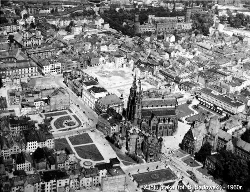 Legnickie Stare Miasto, widoczne na czarno-białych zdjęciach zrobionych tuż po wojnie, było całkiem nieźle zachowane. Budynki skazano jednak na postępującą dewastację, a w latach 60-tych większość z nich rozebrano, pozostawiając jedynie Katedrę, Zamek (też częściowo przebudowany po pożarze) i nieliczne pojedyncze obiekty (patrz: zdjęcie kolorowe).
