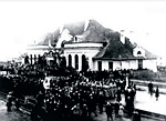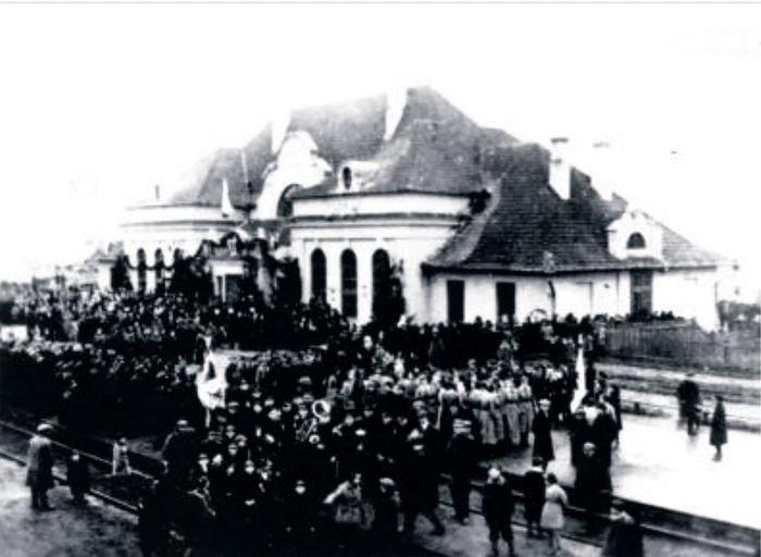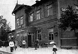 Nowy dworzec kolejowy w Bielsku Podlaskim (fotografia pierwszego, drewnianego dworca - ostatnia z dodatkowych) został wybudowany przez władze polskie w stylu neobarokowym w 2. połowie lat 20 XX wieku i zniszczony w czasie II Wojny Światowej (być może w wyniku niemieckiego bombardowania pozycji radzieckich w czerwcu 1941 r.). Dworzec nawiązywał swoją formą do narodowego "stylu dworkowego" popularnego na ziemiach polskich do przełomu lat 20/30 XX wieku. Posiadał dużo cech formalnych upadabniających go w stylistyce do, także nieistniejącego, dworca kolejowego w Hajnówce - m.in. wysoki czterospadowy dach, założenie osiowe, wątki neobarokowe w wystroju zewnętrznym. Wejście flankowały dwa ryzality mieszczące kasy i poczekalnie. Nad wejściem wznosił się zwieńczony neorenesansową attyką szczyt z półkolistym oknem.