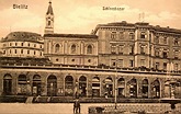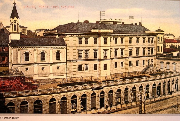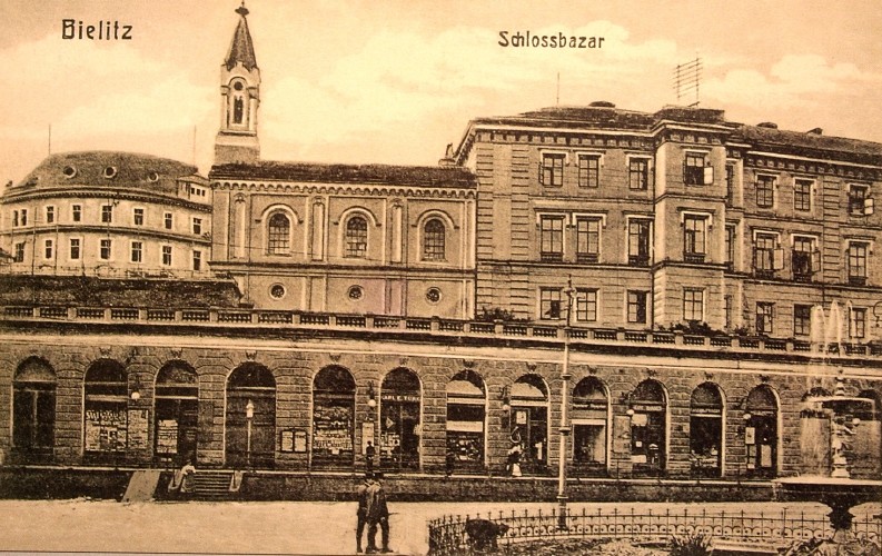 W latach 1899-1973 w miejscu widocznego obecnie od strony wschodniej ceglanego muru oporowego stał ciąg tzw. bazarów, tworzących efektowną podbudowę architektoniczną dla bryły zamku. Były one pierwszym swoistym centrum handlowym w Bielsku, mieściły się w nich same sklepy. Nad budynkiem urządzone były ogrody książęce. Niestety, bazary wyburzono w związku z poszerzaniem ulicy Zamkowej przez prezydenta Antoniego Kobielę (zniszczono wtedy paredziesiąt kamienic, zlikwidowano tramwaje, skierowano przez środek miasta czteropasmowy ruch z GOP-u). Potem pojawiały się co prawda pomysły aby bazary zamkowe odbudować, ale niestety zabrakło funduszy na ten cel.