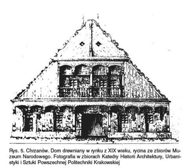 Dom drewniany z podcieniami powstał przy Rynku w Chrzanowie w XVIII lub na pocz. XIX wieku.