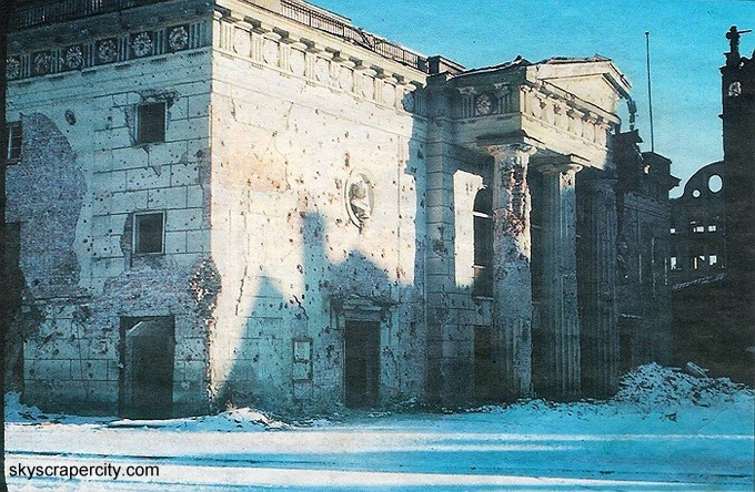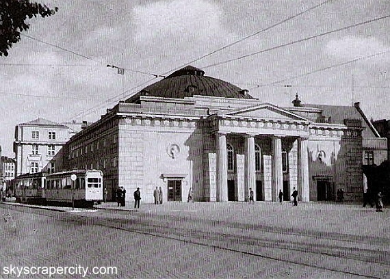 Teatr z epoki klasycyzmu został zrujnowany w wyniku działań II Wojny Światowej. Od lat 60-tych XX wieku stoi w tym miejscu nowy gmach.