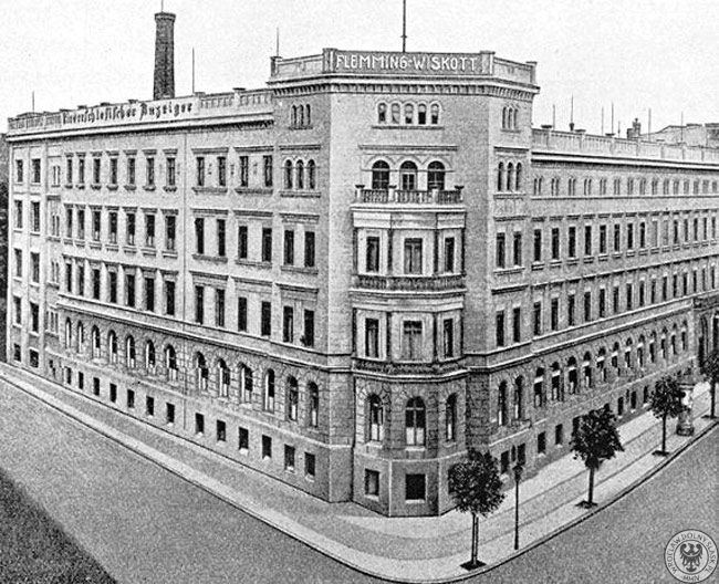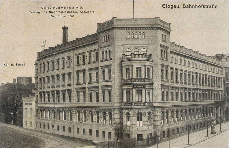 Wzniesiony w latach 1867-1869 Flemminghaus, był siedzibą największego wydawnictwa w tej części Prus. Gmach zlokalizowany był w okolicach zamku, przy zbiegu ówczesnych ulic Dworcowej i Poczdamskiej.
