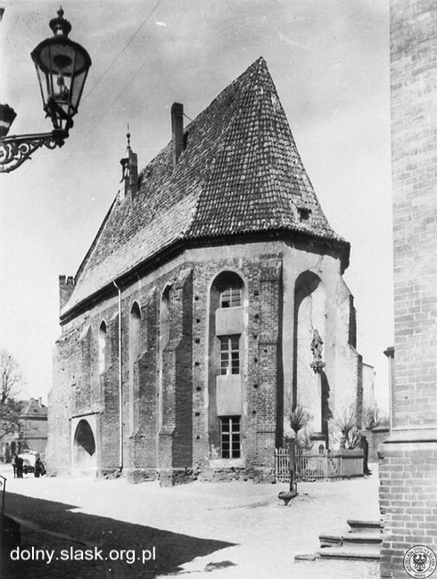 Kaplica św. Anny pełniła rolę oratorium przykolegiackiego cmentarza. Kaplica zbudowana była z cegły, na planie prostokąta z wieloboczną absydą od wschodu (3/8). Lekka korekta w orientacji obiektu (NW-SE) spowodowana była ukształtowaniem terenu. Kaplica posiadała wysoki, dwuspadowy dach z sygnaturką. Od połowy XVIII w. służyła jako magazyn wojskowy. W 1872 została adaptowana na cele szkoły kolegiackiej, trzydzieści lat później znów pełniła rolę magazynu - tym razem urządzeń kościelnych. Zniszczona w 1945 roku. W 1972 roku rozebrana.