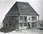 Ratusz w Goniądzu wybudowano z drewna w XVII wieku i pokryto dachówką w XIX wieku. Od frontu posiadał ganek wsparty na drewnianych rzeźbionych kolumnach. Mieścił się w nim skarbiec, archiwum miejskie, miary królewskie, sala obrad rajców. W budynku odbywały się też sądy i przetrzymywano więźniów w areszcie. Pod koniec XIX w. ze względu na niedostosowanie budynku do aktualnych potrzeb miasta, ratusz został rozebrany.
