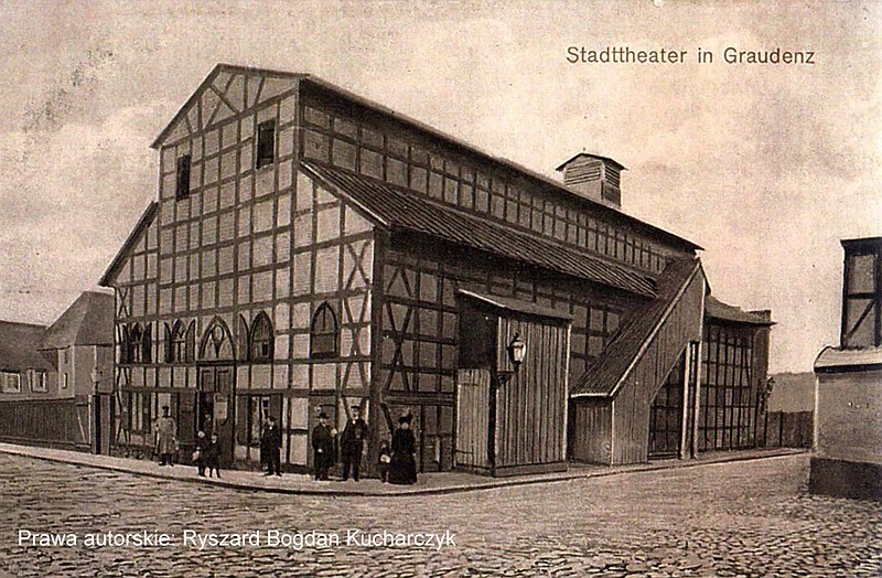 Teatr Miejski został wybudowany w 1847 roku. Budynek był usytuowany dłuższym bokiem do ul. Podgórnej a wejście główne miał od strony ul. Solnej. Obiekt zbudowany został z muru pruskiego. Potocznie nazywany był przez grudziądzan "starą stodołą". Teatr miał 324 miejsca siedzące i 90 stojących. Swoją funkcję kulturalną pełnił do 1919 roku, kiedy to ze względów bezpieczeństwa przeznaczono go na skład szkła i porcelany. W latach późniejszych budynek był wielokrotnie przebudowywany.