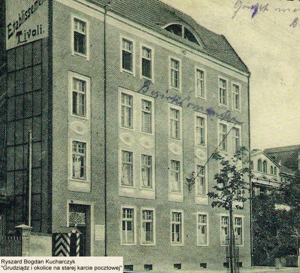 Nieistniejący Budynek Urzędu Gubernatora Twierdzy (ul. Legionów) obok którego znajdował się ogród "Tivoli" wraz z samym lokalem i kinoteatrem.