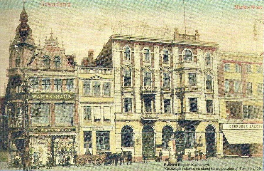 Elegancki hotel "Królewski Dwór" zbudowany w latach 90-tych XIX wieku, w miejscu kamienicy zaadaptowanej w 1831 r. na Ratusz. Hotel oraz przyległe budynki zostały zniszczone w 1945 roku.