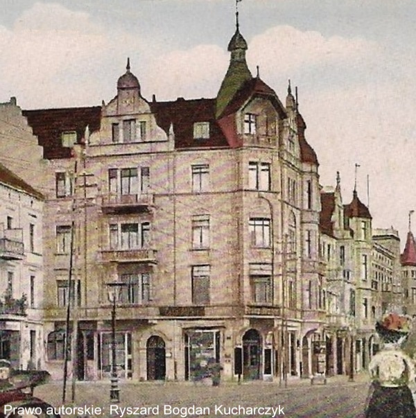 Kamienica spalona i rozebrana 1947 roku. Przed 1920 r. restauracja E.Rohl i duży sklep (własność G. Wollert). W latach przed II wojną światową restauracja Franciszka Arendta, sklep z galanterią A.Binierowski i zakład fryzjerski M.Kotlewskiego.