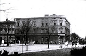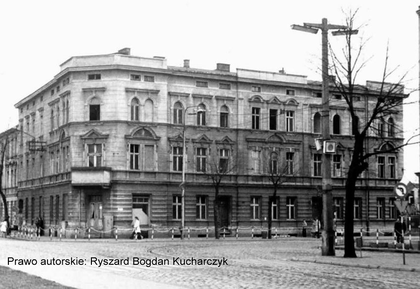 Nieistniejący budynek w kierunku wschodnim od al. 23-go Stycznia - róg ul. Rapackiego i Focha (w 1928 r. przy ul. Tuszewska Grobla nr 1-7) przed zabytkową czynną Spółdzielnią Mleczarską. Budynek mieszkalny budowany ok. 1905 roku, zburzony w latach 70-tych.