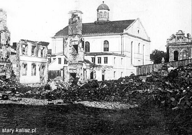 Synagoga została zbudowana po 1852 roku na miejscu starszej świątyni. Nie mogła jednak równać się z poprzedniczką, ponieważ nie nadano jej typowych cech stylowych. Otoczona była różnymi przybudówkami służącymi do celów gospodarczych i rytualnych. 14 października 1861 roku w synagodze odbyło się uroczyste nabożeństwo w intencji zmarłego arcybiskupa warszawskiego Antoniego Melchiora Fijałkowskiego. Był to symbol solidarności Żydów kaliskich, którzy wspólnie z Polakami walczyli o niepodległość Polski. W 1939 roku hitlerowcy złupili synagogę, gdzie znajdowały się przedmioty kultu o ogromnej wartości artystycznej, a dla większego upokorzenia, do jej rozbiórki w 1940 roku zmusili kaliskich Żydów.