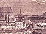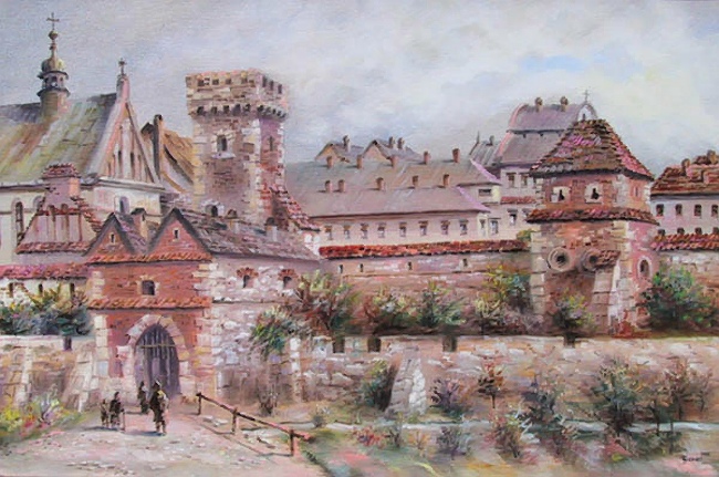 Pierwsze wzmianki o bramie prowadzącej w kierunku Traktu Praskiego pochodzą z 1310 roku. Przed bramą znajdowały się bagna oraz stawy, które ciągnęły się od Wawelu po Bramę Szewską, dlatego też brama nie musiała być bardzo rozbudowywana i miała początkowo skromną formę. W okresie panowania króla Władysława Jagiełły brama otrzymała ufortyfikowaną szyję, pod którą znajdowała się fosa miejska. Brama posiadała również most zwodzony. W 1655 roku w czasie Potopu szwedzkiego skutecznie oparła się szturmowi. Za obronę bramy odpowiadały Cech Kotlarzy i Cech Ślusarzy i dlatego zwano ją też Bramą Kotlarzy lub Bramą Ślusarzy. Została rozebrana w XIX wieku.