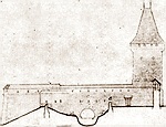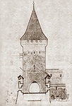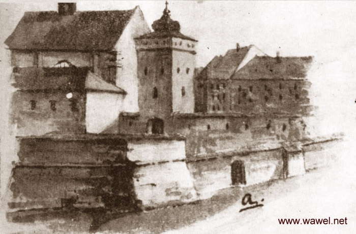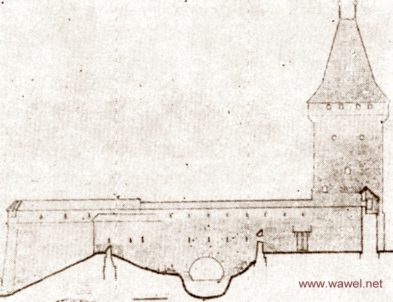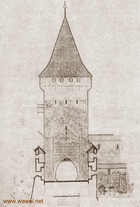 Zbudowana w 1312 roku gotycka brama prowadziła na trakt w kierunku Sandomierza, przypominała pierwotnie Bramę Floriańską. W bramie był most zwodzony oraz osobne przejście dla ludzi i osobny przejazd dla wozów. Niedaleko bramy znajdowała się studnia do gaszenia pożarów w czasie oblężenia oraz strzelnica ćwiczebna dla członków cechów miejskich. Bramą opiekował się nią Cech Rzeźników. W latach 1655-1657 szwedzki generał Wutrz wzniósł przed bramą bastion w obawie przed atakiem połączonych wojsk polsko-austriackich. Z uwagi na zły stan techniczny, bramę w roku 1717 zamknięto dla ruchu kołowego, przerzucając go na położoną niedaleko Bramę Nową. Podczas Konfederacji Barskiej w 1768 r. Moskale atakowali bramę powodując kolejne zniszczenia. Brama została rozebrana w 1812 roku.