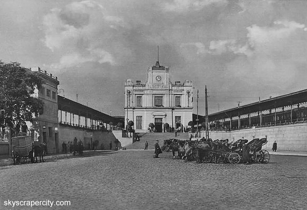 Dworzec zaprojektował architekt Czesław Domaniewski. Przed wejściem znajdowały się wysokie schody, nadające budynkowi monumentalny charakter. Wewnątrz było sporo secesyjnych detali, m.in. mosiężne wykończenia i kryształowe szyby w drzwiach. 28 września 1946 r. na stacji wydarzyła się katastrofa kolejowa, w której zginęło 21 osób, a ponad 40 zostało rannych. W 1994 r. na miejscu starego budynku dworca postawiono nowoczesny obiekt.