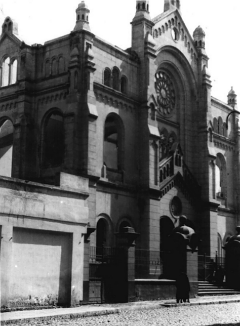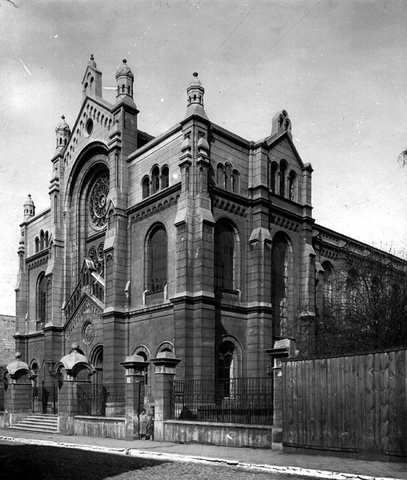 Za Wikipedia.pl: Synagoga Ezras Izrael w Łodzi, zwana Litwaków lub Wołyńską została zbudowana w latach 1899-1904, według projektu Gustawa Landau-Gutentegera. Plac przy Wólczańskiej 6 w końcu XIX wieku kupiła grupa żydowskich kupców. Budynek świątyni powstał na planie prostokąta. Miała trzy kondygnacje. Nad podwójnym wejściem był trójkątny szczyt z arkadowym fryzem, nad nim duża rozeta. Elewację zdobiły okna o różnej wielkości, a na szczycie były małe wieżyczki zakończone kopułami. Synagoga miała dwa odrębne wejścia dla kobiet, którymi wchodziły na galerię. Tuż po odzyskaniu niepodległości, synagoga zarządzana była przez stowarzyszenie "Ezras Izrael". Podczas II wojny światowej, w nocy z 10 na 11 listopada 1939 roku niemieccy okupanci spalili synagogę. Podczas niszczenia budynku Niemcy znęcali się nad rabinami synagogi. W 1940 roku ostatecznie usunięto zgliszcza bóżnicy.