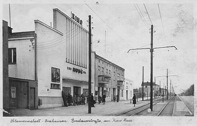 Widokówka pochodzi z okresu II Wojny Światowej, gdy Łódź była nazywana przez Niemców Litzmannstadt, a Ruda Pabianicka - Erzhausen. Kino Muza mieściło się przy ul. Pabianickiej w mieście Ruda Pabianicka, po II wojnie światowej przyłączonym do Łodzi. Powstało prawdopodobnie w okresie międzywojennym. Od 1 września 1992 roku odbywały się w nim tymczasowo msze nowo erygowanej parafii rzymskokatolickiej pw. Najświętszego Imienia Maryi. W 1996 roku na miejscu kina Muza stała już nowa kaplica.