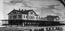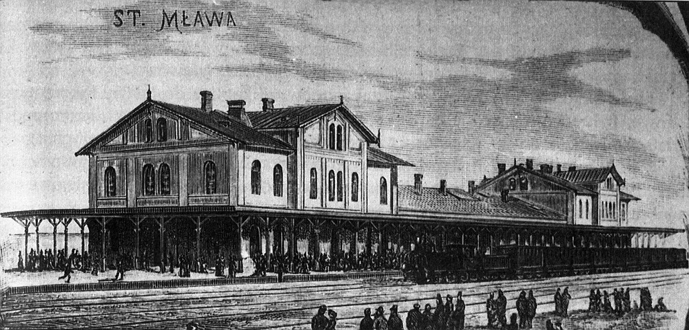 Prezentowany budynek był najokazalszym obiektem na szlaku kolei nadwiślańskiej prowadzącej z Kowla, przez Lublin, Warszawę do Mławy. Dworzec mławski posiadał biura, salę rewizyjną i pasażerską, pokoje dla zamożniejszych gości i urzędników. W sumie było tu 27 mieszkań a największy apartament składał się z kuchni i sześciu pokoi. Dworzec uległ zniszczeniu w wyniku II Wojny Światowej. Zastąpiono go skromnym, piętrowym budynkiem o nieciekawej architekturze. Z dawnej zabudowy dworcowej zachowały się jedynie: nastawnia, dom drużnika i budynek magazynowy.