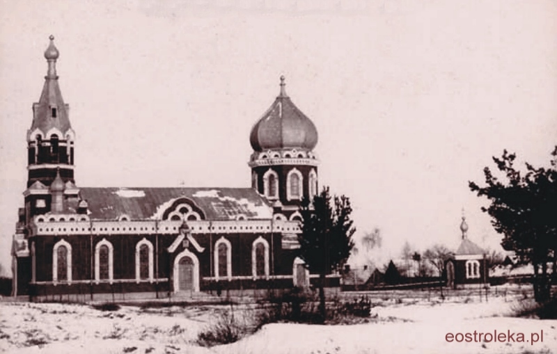 Cerkiew wybudowana dla stacjonującego w mieście 21. Muromskiego Pułku Piechoty. Pierwszą skromną drewnianą cerkiew pułk wybudował własnymi siłami około 1889 roku przy ulicy Łomżyńskiej, prowadzącej od miasta do dworca kolejowego. Z inicjatywy dowódcy pułku gen. Kossowa i protoreja Żdanowa przystąpiono w 1901 roku do budowy nowej cerkwi. Pułk wyasygnował z własnych środków kwotę 7 tys. rubli, a pozostałe brakujące 35 tys. uzyskał od skarbu państwa. Plac pod budowę nieodpłatnie przekazał magistrat miejski. Pracami budowlanymi kierował inż. ppłk Witman. Położenie kamienia węgielnego odbyło się 6 maja 1902 roku. Uroczystego wyświęcenia dokonano 7 października 1904 roku. Była to typowa wojskowa cerkiew. Kopuły nad ołtarzem i dzwonnicy pokryto blachą ocynkowaną. Drzwi i okna były żelazne. Ikonostas wykonano z drewna dębowego. Ikony umieszczone w ikonostasie napisał wojskowy szeregowiec Iwanow, który przed powołaniem do wojska prowadził pracownię malarską w Sierpuchowie w guberni moskiewskiej. Do cerkwi oprócz żołnierzy pułku należał batalion saperów oraz okoliczni mieszkańcy. W okresie międzywojennym cerkiew przebudowano na salę gimnastyczną.