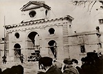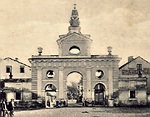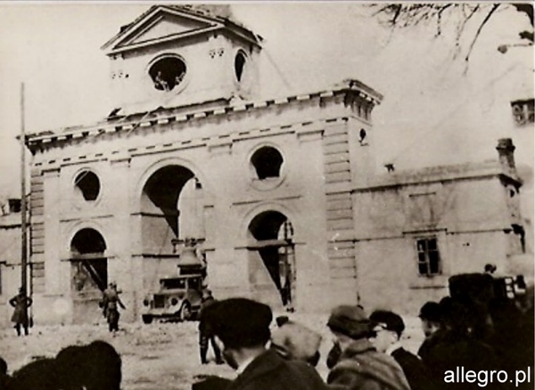 Brama-dzwonnica powstała w latach 1773-76 z fundacji księcia Michała Fryderyka Czartoryskiego zapewne według projektu Szymona Bogumiła Zuga. Obiekt rozebrany został przez wojska niemieckie w maju 1941, gdyż utrudniał im przejście na wschód (fotografia dodatkowa).