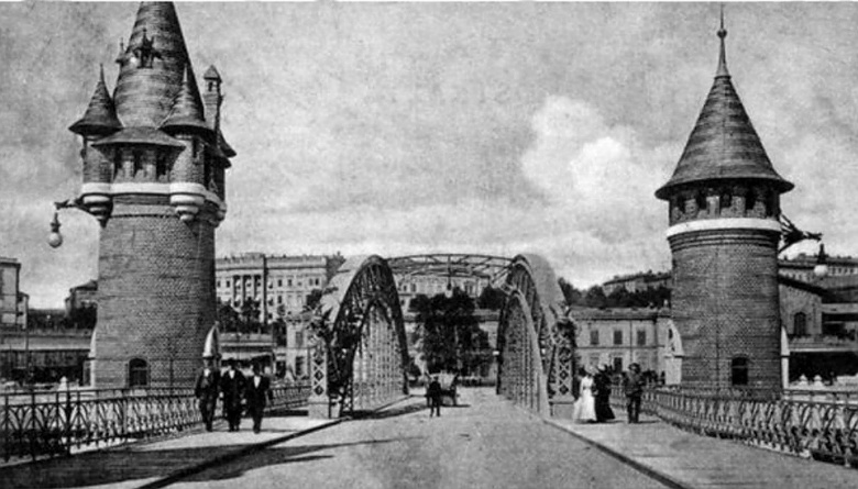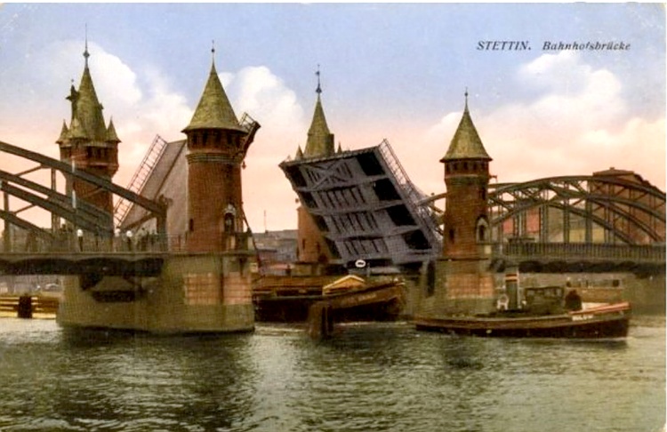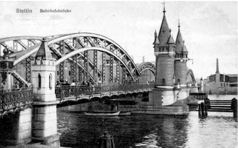 Stalowy Most Dworcowy (niem. Bahnhofsbrucke) zastąpił drewnianą konstrukcję, istniejącą w jego miejscu od 1854 r. Posiadał przęsło zwodzone. W 1945 roku został wysadzony przez wycofujące się z miasta wojska niemieckie. Do obecnych czasów przetrwały jedynie wieżyczki wjazdowe na Kępie Parnickiej. Planowana jest odbudowa mostu w tym miejscu, lecz nie wiadomo w jakiej formie.