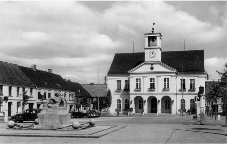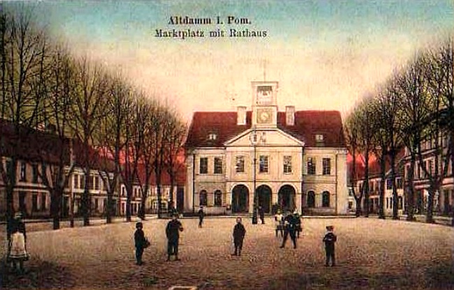Obiekt ten powstał w miejscu starego ratusza, który, z uwagi na zły stan techniczny, zdecydowano się zastąpić nowym budynkiem. W 1830 roku zakończono budowę przedniej części, natomiast tylną zbudowano w 1887 r. Oba budynki połączono skrzydłem w jeden dopiero w 1931 r. Oprócz biur komunalnych w obiekcie znajdowało się m.in. muzeum regionu. Gdy w 1939 roku miasto Dąbie zostało przyłączone do Szczecina, budynek przestał pełnić swoją główną funkcję. Został w znacznym stopniu zniszczony w trakcie bitwy o Dąbie w 1945 r. Mimo, iż był jednym z niewielu budynków nadającym się do odbudowy, władze zdecydowały się go rozebrać i w jego miejscu postawić komunistyczne osiedle.