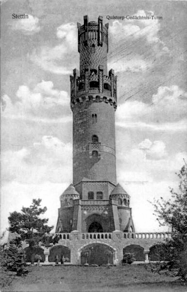 Wybudowana została na polecenie Martina Quistorpa w latach 1900-04 w hołdzie dla ojca Johannesa, szczecińskiego fabrykanta i filantropa, fundatora wielu inwestycji miejskich. Projekt wieży został wykonany przez Franza Schwechtena. Była to najwyższa szczecińska wieża widokowa. Jej wysokość wynosiła 47 metrów i miała dziewięć kondygnacji. Na dwóch narożach dachu znajdowały się monumentalne rzeźby alegoryczne uosabijące Handel i Przemysł autorstwa Ludwiga Manzla. Na najniższych kondygnacjach znajdowała się restauracja oraz kawiarnia.