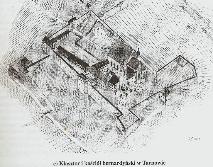 W 1468 r. rozpoczęta została przez Jana Amora budowa murowanego zespołu klasztornego, otoczona osobnym murem obronnym. Po wybudowaniu nowego klasztoru dla Bernardynów przy ulicy Bernardyńskiej zespół przekazano w ręce zakonu Franciszkanów. Krótko po dokonaniu przez Austrię I rozbioru Polski (1772 r.) władze cesarskie dokonały likwidacji klasztoru. Następnie przystąpiono do rozbiórki większości jego zabudowań. Ocalało jedynie prezbiterium kościoła klasztornego, które podzielono stropami na piętra. Do niego dobudowano klasycystyczny gmach Sądu Szlacheckiego (Forum Nobilum). Przez większość 20-lecioa międzywojennego był on siedzibą władz Miasta Tarnowa. Po II wojnie światowej mieściły się tam biura kilku instytucji państwowych. W roku 1964 na parterze dawnego prezbiterium urządzono kaplicę Kościoła Polskokatolickiego.