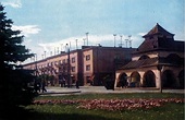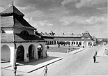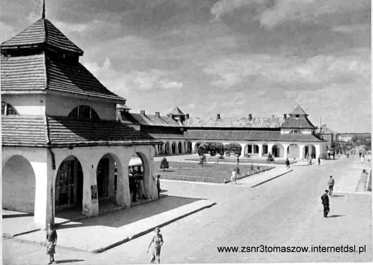Hale targowe powstały z inicjatywy miejscowych kupców, którzy zgłosili się do władz Tomaszowa, wyrażając zainteresowanie powstaniem nowych obiektów handlowych w centrum miasta. W wyniku tej społecznej inicjatywy powstały dwie piętrowe hale, każda wzniesiona na planie litery "L" o bokach długości 40 m. Szerokość pojedynczej hali wynosiła 12 m. Podcienia (z obu stron) miały szerokość prawie 2 m.