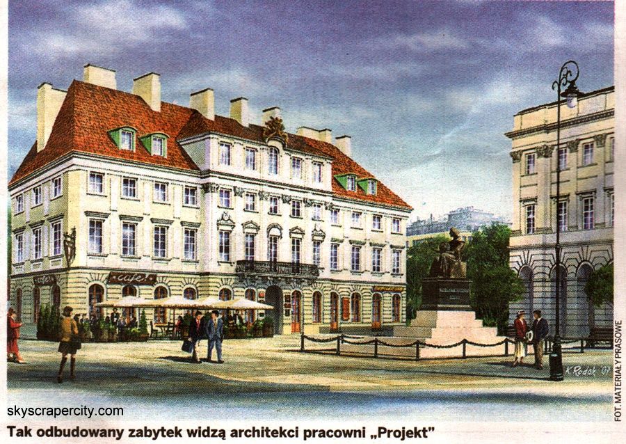 Pałac wybudowano dla Kazimierza Karasia, kasztelana wiskiego. Budynek zaprojektował Jakub Fontana, wzorując się na swoim wczesniejszym dziele - elewacji północnej południowego skrzydła Zamku Królewskiego. W czasach stanisławowskich mieściła sie tu szkoła paziów, w latach Insurekcji pałac był miejscem pobytu Kościuszki. Budynek wyburzono przed I wojną światową - w miejscu tym miała powstać dochodowa kamienica. Wojna przerwała prace budowlane - do których już nigdy nie powrócono. Do dziś jest w tym miejscu pusty plac. Kilka lat temu pojawił się pomysł, aby pałac odbudować, niestety jak na razie brak realizacji tych zamierzeń.