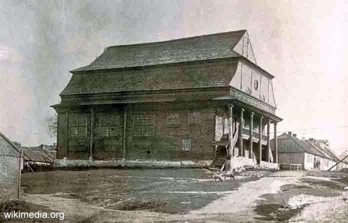 Synagoga drewniana, wzniesiona według projektu Beniamina Hilela.